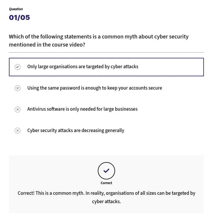 Video-based learning with quizzes - easy to complete, easy to remember.