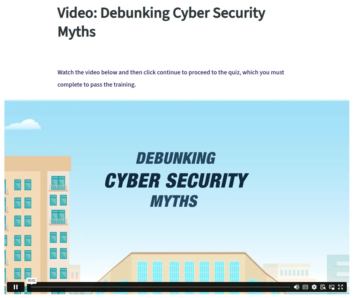 Training is designed to be short and effective. Most modules take just a few minutes to complete and are delivered at scheduled intervals, minimizing disruption while reinforcing key security concepts over time.